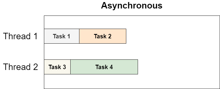 asynchronous는 여러 작업들을 처리함에 있어서 순서와 작업 완료 여부 상관없이 독립적으로 동시에 처리하는 것을 asynchronous라고 합니다.